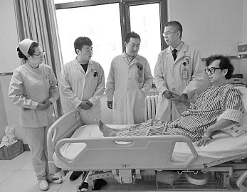 北京朝阳中西医结合急诊抢救中心的医护人员常年坚持立足本职学雷锋,“以病人需求为中心”,救死扶伤,被患者誉为“急救中心的活雷锋”“生死线上的爱心天使”。图为3月5日该中心手外科副主任医师鲍鲲(左四)、外科医师裴福春(左三)在查房并对患者进行手术前心理辅导。
