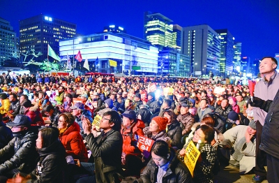 3月10日,在韩国首尔光化门广场,支持弹劾朴槿惠的民众参加烛光晚会。韩国宪法法院10日就总统弹劾案作出判决,宣布国会在去年12月提出的总统弹劾案成立。朴槿惠随即被罢免,成为韩国宪政史上首位被弹劾下台的总统。新华社记者 刘昀摄
