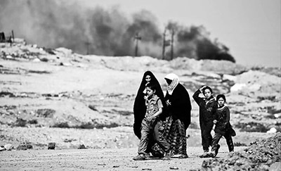 当地时间3月29日,伊拉克摩苏尔收复战持续,难民逃离摩苏尔老城。伊拉克武装力量29日继续向“伊斯兰国”组织盘踞的摩苏尔西部城区发动进攻。由于该地区仍有大量平民滞留且房屋密集、街道狭窄,“伊斯兰国”武装分子抵抗较为顽强,伊拉克武装力量攻势近来进展缓慢。