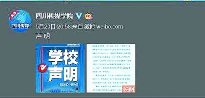 5月20日是四川传媒学院20周年校庆。当晚,四川传媒学院通过官方微博就朱航反映的“侵权”行为发出了第一份回应声明,声明中提到“目前事件尚在调查阶段”,学校会“尊重法律,绝不回避问题”。对此,朱航说,《翩翩起舞的姑娘》是自己的毕业作品,和7名同学担任主创并共同出资拍摄完成。自己是该片的唯一编剧和唯一导演,校方全程从未有过任何形式的参与。