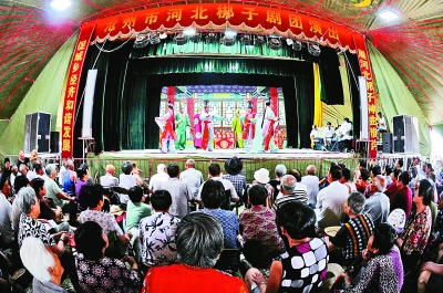 这是山东省枣庄市峄城区开展的“一村一年一场戏”活动的一个场景。自今年4月中宣部、文化部、财政部联合印发《关于戏曲进乡村的实施方案》以来,像峄城区一样,全国各地全面启动“戏曲进乡村”活动。与以往单纯的政府送戏下乡相比,戏曲进乡村活动的社会化程度明显提高。曾经长期看不上戏的农村群众,像久旱逢甘霖的禾苗,得以尽情享受传统戏曲艺术的滋养。