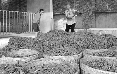 8月4日,四川省仁寿县龙桥乡辣椒种植户正在将辣椒装筐出售。龙桥乡在推进脱贫攻坚工作中,引导贫困群众发展“短平快”的辣椒产业,采取“党支部+合作社+贫困户”订单种植模式,确保了贫困户“种有所保、销有所路”。