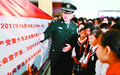 江苏泰州市公安局高港分局民警开展“十九大宣讲进校园”活动。本报记者 郭俊锋摄/光明图片