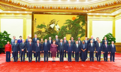 会见前,习近平同外方嘉宾一一握手,并集体合影。