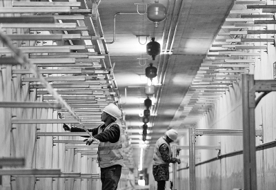 12月13日,施工人员在对廊体内的成品支架进行安装作业。近日,由中建三局三公司承建的湖北咸宁城市地下综合管廊PPP项目一期建设工程正处于主体结构施工及廊内安装阶段。该工程建成后可将原本一条条单独铺设的线缆管线集中,使城市告别“蜘蛛网”“拉链路”,成为改善城市治理的“收纳神器”。新华社记者 肖艺九摄
