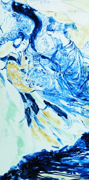 在我看来,只有不拘泥于传统的笔墨技法,融各方艺术精华于一炉,才能建立起艺术家个性化的绘画语言,将青花瓷绘之美与女性艺术家特有的细腻情感相融合,生发出思韵悠长的青蓝画境。画到酣畅淋漓时,作品便充溢着澄净绵长的意蕴。