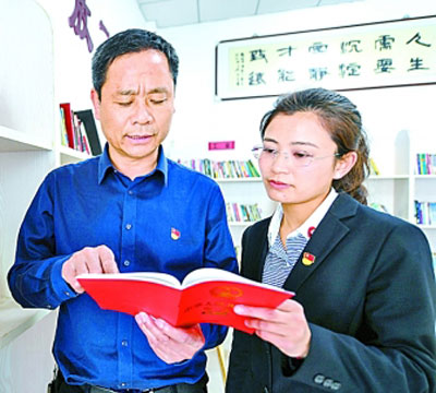 2018年3月30日,在浙江省长兴县虹星桥镇港口村,基层党员在学习宪法。从3月22日开始,长兴县在全县范围内开展党员送宪法到基层宣讲活动,各级党员干部进农村、进社区、进企业、进校园开展宪法宣讲。新华社发