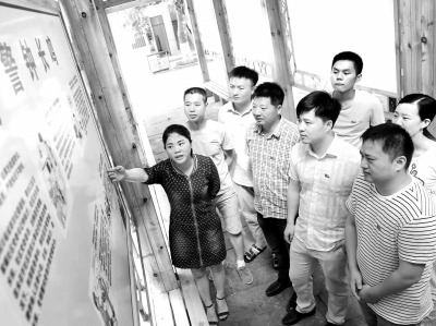5月18日,在江西省峡江县罗田镇,村级纪检员在镇廉政文化长廊参观学习。