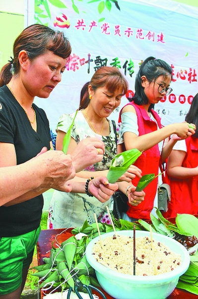 江西共青城市茶山街道湖畔社区日前开展“粽叶飘香传真情 连心社区邻里情”包粽子活动,党员、居民、志愿者等近百人参加。