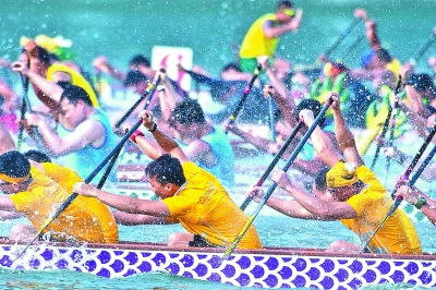 6月16日,参赛队在比赛中。当日,由澳门特别行政区政府体育局和中国澳门龙舟总会主办的2018澳门国际龙舟赛在澳门南湾湖水上活动中心开赛。