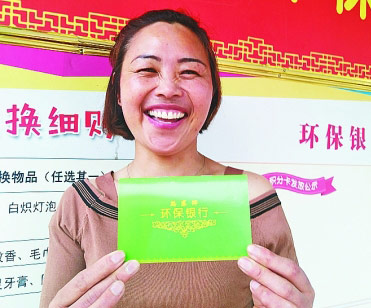 孙得庆兑换香皂一块,孙得伟兑换毛巾一条,邓雨亮兑换塑料盒一个……走进原阳县路寨乡后大柳村,墙壁上的“环保银行”公示栏格外醒目。