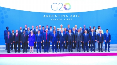新华社布宜诺斯艾利斯11月30日电(记者陈贽、骆珺、郑晓奕)当地时间11月30日,二十国集团领导人第十三次峰会在阿根廷布宜诺斯艾利斯举行。国家主席习近平出席第一阶段会议并发表题为《登高望远,牢牢把握世界经济正确方向》的重要讲话,强调二十国集团要坚持开放合作、伙伴精神、创新引领、普惠共赢,以负责任态度把握世界经济大方向。(讲话全文见2版)