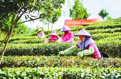 严冬时节,海南岛五指山地区迎来了“早春茶”采摘季,各茶园的茶农忙着采摘今年的第一批“早春茶”。图为1月8日,农民在五指山椰仙茶园采茶。