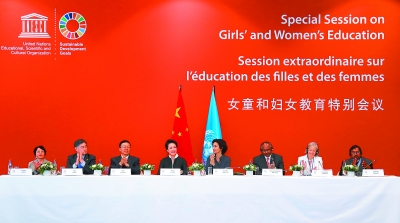 本报巴黎3月26日电(记者马赛、黄昊)当地时间26日上午,国家主席习近平夫人、联合国教科文组织促进女童和妇女教育特使彭丽媛应联合国教科文组织邀请,出席在该组织巴黎总部举行的女童和妇女教育特别会议。