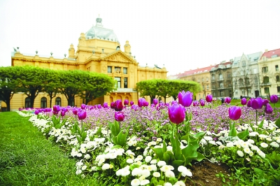 4月10日,在克罗地亚首都萨格勒布,一处广场鲜花盛开。近日,克罗地亚首都萨格勒布春意盎然,市中心的多处广场、公园鲜花盛开。新华社发