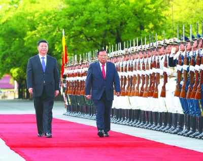 习近平欢迎本扬来华进行国事访问并出席第二届“一带一路”国际合作高峰论坛。习近平表示,今年是中老建立全面战略合作伙伴关系10周年。在两党中央坚强领导下,中老关系取得巨大发展,正处于历史最好时期。在新的起点上,中方愿同老方一道,以签署《构建中老命运共同体行动计划》为契机,为中老关系长远发展提供重要指引,共同打造新时代中老关系。