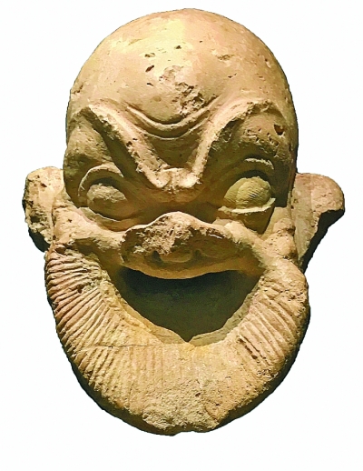 阿伊哈努姆古城遗址是塞琉古王朝建立的一座城池,展览中这个古城出土的珍宝有非常明显的希腊化特征——“神庙、竞技场、神话人物、剧院”,雷雪飞用几个名词向观众解释了希腊化城市的重要标志。在阿伊哈努姆古城遗址的复原图中,可以清晰看到这些元素。从阿伊哈努姆古城出土的希腊化文物十分丰富,包括希腊人物和神像雕刻、太阳神阿波罗神像、鎏金银盘、大夏和印度古钱,甚至还有亚历山大的老师亚里士多德的希腊哲学手稿。