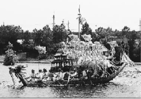 本报讯(记者孟歆迪、曹继军)立竿、燃旺盆、送标、接龙、砍缆、起航……上海罗店划龙船独有的习俗在美兰湖畔上演。伴随着乐声与号子,3艘龙船驶出港湾,在荷灯装饰的湖中,或旋转迂回,或相对穿梭;岸边的市民游客或立或坐,欢呼雀跃,场面十分热闹。6月5日,“我们的节日·端午”暨第十三届上海宝山罗店龙船文化节盛大开幕,吸引了上万中外游客同赏龙船,感受非遗魅力。