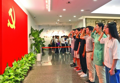 6月27日,华东师范大学部分学生党员在中共一大会址纪念馆重温入党誓词。 新华社记者 刘颖摄