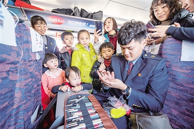 “这下孩子们坐火车就不会觉得那么枯燥了。”带着孩子体验家乡高铁的旅客禹晓燕说,以前乘车,孩子总会觉得无聊,整个旅途一直都在追问什么时候才到站,叽叽喳喳闹个不停,“今天乘车,收到礼物后,他一直拿着它玩,孩子很开心,大人也省心!”