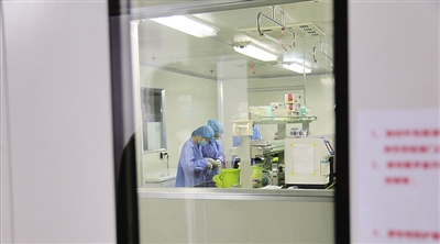 记者来到检测的实验室,工作人员小王正在忙着把检测样本通过传递窗口送入实验室。脱下手套,她告诉记者:“我们的试剂盒发放到医院,有实验室条件的医院可以自己在实验室检测。如果没有条件,可以把采集的样本直接送到我们这里,我们24小时工作进行检测。”