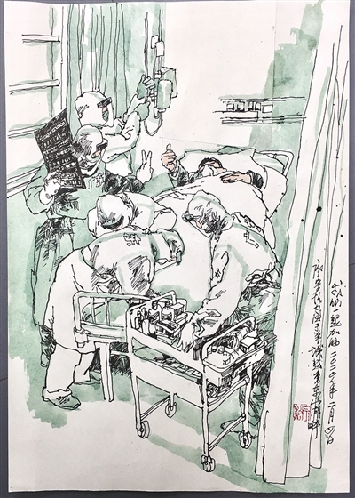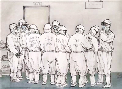 冬春之季,疫情告急,全国人民迅速行动起来,打响了一场没有硝烟的战争。除夕前后,各地医疗队迅速驰援武汉等疫情严重地区。医护人员奔赴战“疫”前线,他们筑起了健康防线,也在人们心里筑起一道信念的防线。这些天,被口罩勒到破皮的脸颊,被汗水浸到泛白的双手,手术室外席地而眠的身影……医护人员与时间赛跑、跟病毒搏击,让人民群众真切体会到什么是白衣战士的无畏、坚韧、奉献。广东医疗队是最早抵达武汉的驰援队伍之一,他们专业、敬业的救治,得到了患者和家属的信任和好评。广东医疗队也是所有奋战在抗疫一线的白衣战士的缩影,他们是丈夫,是妻子,是父母;是医生,是请战者,更是勇士。他们是最美“逆行者”,他们心中有更多需要守护的人。以医疗队发回的大量日记为素材,我们联同中国美术家协会,组织画家们记录下不同寻常的一幕幕,那些瞬间注定会成为永恒的经典。