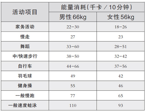 同时,膳食指南中也告诉了我们活动需要消耗的热量。