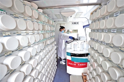 2月26日,在武汉江夏方舱医院的“流动应急智能中药房”里,工作人员吴志婷准备制药。目前该“流动应急智能中药房”主要制备“江夏方舱3号方”颗粒状中药,5分钟之内就可以制作6盒成药,供6名患者服用3天。该种“流动应急智能中药房”目前已部署在武汉多个方舱医院。新华社记者 沈伯韩摄
