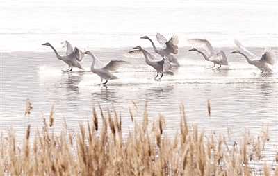 对于A55和伙伴们来说,这片湿地是一个温馨的家园,这里有救助站恩人们无微不至的照顾,有张明云等人的无私关爱,还有好心市民免费提供的“口粮”……在随风起伏的芦苇荡,鱼儿在水中尽情畅游,A55和伙伴们引吭高歌,不时飞掠水面的雉鸡、苍鹭和野鸭也跟着浅吟轻唱,一切在雾气氤氲的冬日里交织回响。