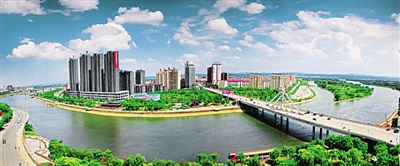 远眺新余市渝水区,碧水蓝天,绿意盎然。廖海金摄/光明图片