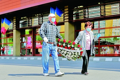 罗马尼亚总统约翰尼斯4月22日宣布,紧急状态5月15日结束后将不再延长,届时居民可自由出行,但在封闭空间或乘坐公共交通工具时必须戴口罩和手套。图为4月29日,两名市民手拿花篮走在罗马尼亚布加勒斯特最大的一家农贸市场。新华社发
