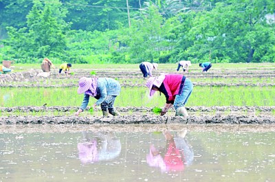 谷雨过后,选定晴好的吉日。清早,村庄笼着一层薄雾,村民们怀着喜悦的心情涌向田头,点燃爆竹,高声呼喊:“开秧门啰!”