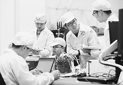 “‘龙江二号’微卫星项目时间紧、任务重,为保证整星测试的连续性,在实验室熬夜是常有的事。”在团队里负责星务管理分系统的邱实说,记得有一次跟沙特相机进行对接试验,时间与卫星振动试验完全冲突,大家白天进行振动试验,晚上进行相机对接。到了发射关键期,团队每天基本只睡两小时。
