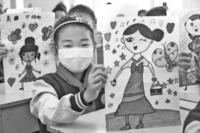 母亲节到来,江苏省连云港市赣榆区黄海路小学开展“画出心中最美妈妈”绘画比赛,图为5月9日学生们拿起手中的画笔,为母亲献上祝福。    新华社发