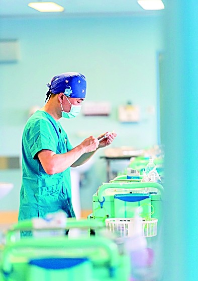 5月11日,在福建漳州正兴医院,重症医学科护士刘明煌为患者配药。新华社发