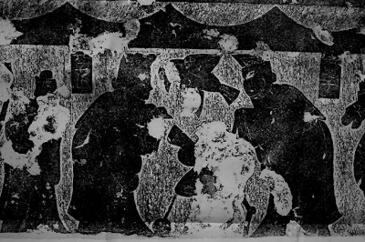 中国国家博物馆馆藏的孔子见老子画像石拓片(局部),左侧榜题为“孔子也”,右侧榜题为“老子”。