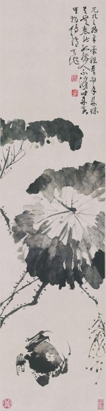 清代对荷花题材表现最有代表性的艺术家则属朱耷,他多以荷花小鸟的形象传达他个人的思想和情感,《荷花小鸟图》(现藏上海博物馆)中对荷花的表现形成了一对鲜明的对比关系,从浅水露泥的荷塘中扶摇直上出几支挺拔修长的荷柄,纤细的荷柄与露泥的荷塘之间存在着一种既相互依偎又独立昂扬的对比关系;荷叶以大笔触的浓墨表现衬托出寥寥几笔勾勒出的荷苞,亦形成了一种浓淡干湿的对比关系,在对比关系中建构出一种个性化的、妙趣自成的审美感知,如朱耷所言“湖中新莲与西山宅边古松,皆吾景观而得神者”。