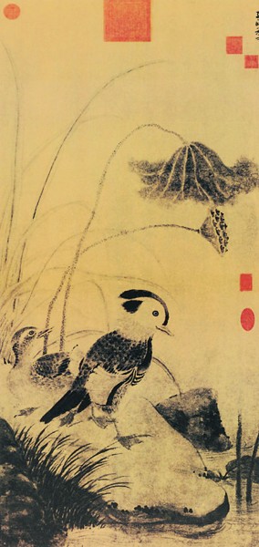 枯荷鸳鸯图(纸本设色) 张中(元代)