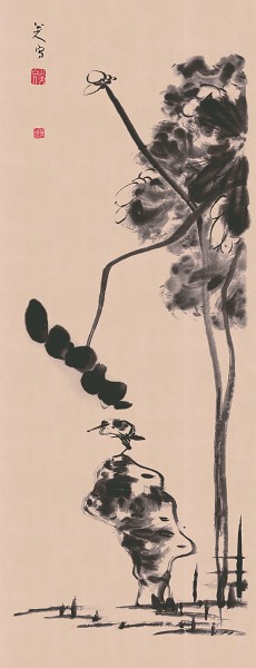 元代张中的《枯荷鸳鸯图》(现藏台北故宫博物院)就是用浅淡素雅的笔墨、以点染结合没骨法的技法创作而成,画面中荷花不再以艳丽的色彩和工细的笔触表现,开始重视笔墨皴擦和水墨氤氲的效果,于粗简写意中表现出枯荷的恣意独立。水墨枯荷的表现只为与艺术家的心境相结合,不为谄媚、不为讨好,这是一种强大而自我的审美表现品格。明代徐渭的《黄甲图》则由元代的小写意一变而为大写意,笔墨表现更加自由和疏朗,亦完全脱离了宋代双钩填色和精工雕琢的表现手法,开始通过使用大笔触的笔墨晕染追求画面淋漓墨迹和墨痕的自如表达效果。但这种水墨氤氲的大写意表现手法,并不是弃荷花造型于不顾,而是不再使用线条造型而重在使用墨色造型,并在“墨分五色”的中国传统色彩观基础上形成荷花的基本颜色构成。“墨荷”的表现,恰恰满足了“以素净为贵”的审美趣味,以及中国传统文人画艺术中追求的笔情墨趣的核心审美特质。
