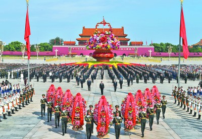 新华社北京9月30日电 缅怀革命先烈,弘扬英雄精神。烈士纪念日向人民英雄敬献花篮仪式30日上午在北京天安门广场隆重举行。党和国家领导人习近平、李克强、栗战书、汪洋、王沪宁、赵乐际、韩正、王岐山等,同各界代表一起出席仪式。
