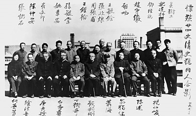 我粗略计算,在这半个月里,启功先生已经点校了八万余字,工作效率很高。据当时一道参加点校工作的书局几位编辑回忆,启先生和大家同吃、同住、同工作,既认真负责,又风趣幽默、乐观大度,仿佛给大家带来了和煦的春风。启功先生也常说:从1971年夏到1977年秋,在中华书局参加《清史稿》点校工作的六年,是他比较稳定、舒心、顺利的时期,书局真正成了他的“第二个家”。在这个大家庭里,先生享受到能为国家古籍整理事业贡献力量的快乐,也感受到了学者、同事之间互相关心和爱护的温暖。有一次,书局找出了一幅1973年参加点校的工作人员在办公楼四楼平台上的合影,让我拿给启功先生看,先生不仅准确地辨认出每一个人,而且马上用毛笔将姓名注写在每个人影像旁,还写明了拍摄的时间,使这幅照片成为书局也是中国古籍整理史上的珍贵资料。