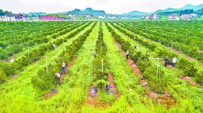 柑橘园园区长陈明元带领村民忙着除草、梳果、修枝……“做梦也没有想到,我这把老骨头还有这个本事。”他负责带领大家管护这278亩土地上的柑橘树,每月固定工资收入1800元。去年,算上务工、入股分红、流转土地等收入,他挣了两万余元,一家四口人均纯收入10819元。