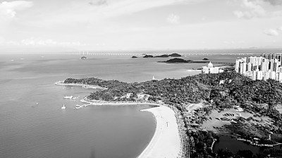 珠海,一手牵着珠江,一手牵着大海,是珠江的明珠,也是大海的宝珠。其闪闪珠光,为珠江增辉,也照亮大海。