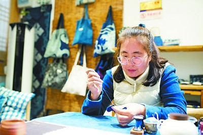 历史文化氤氲在古城的每个角落。“忻州市非遗扶贫就业工坊”里,天然染色技艺——草木染传承人赵慧,一遍又一遍地向游客们展示古老的天然染色技艺。桑葚、石榴、紫甘蓝、黑豆等,这些大家熟悉的材料,都成了她那五颜六色的染料。作为第一批入住古城的非遗传承人,赵慧希望通过自己的小店,将天然染色技艺一代代传承下去,让更多的人了解家乡传统文化,知道忻州、认识山西。