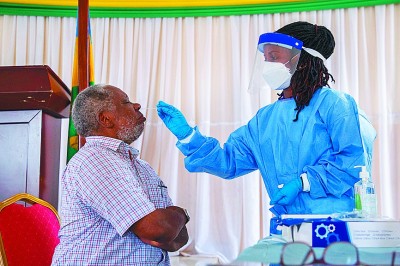 卢旺达生物医学中心1月23日起和首都基加利市政府合作,在基加利对70岁及以上老人、慢性病患者、有疑似症状者和密切接触者免费进行新一轮新冠病毒检测,以了解病毒在这些人中的传播状况。检测为期三天,覆盖基加利各个区域,共计划检测2万多人。图为23日,在基加利,一名老人接受免费新冠病毒检测。