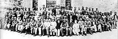 “朱德发言后,趁着落日的余晖,由摄影家吴印咸拍摄了与会者合影留念的照片。这就是著名的‘在延安文艺座谈会上的合影’照片。”谷鹏飞介绍说,晚饭后,由毛泽东作结论,由于人数增加,会址只好改在中央办公厅小楼外的院子里。