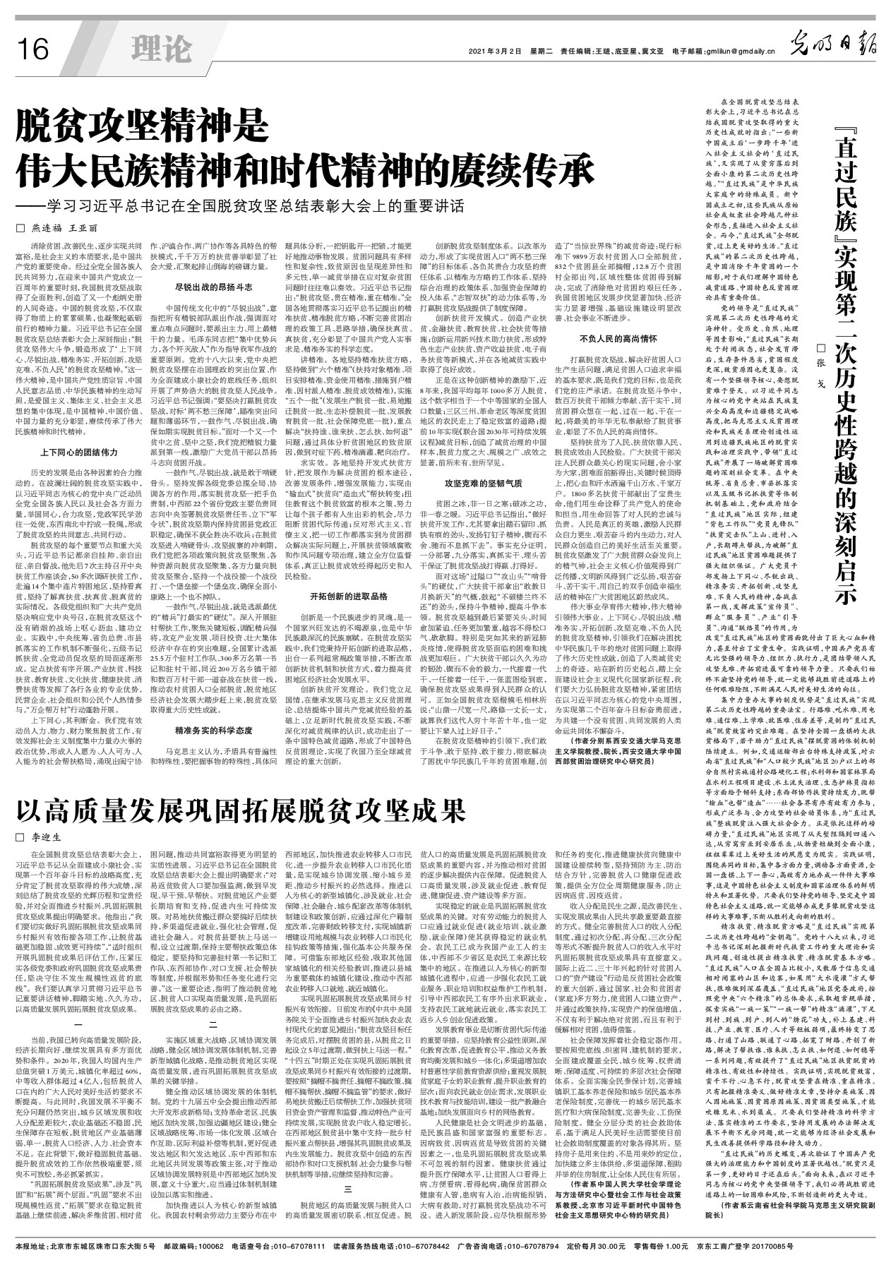 脱贫攻坚精神是伟大民族精神和时代精神的赓续传承