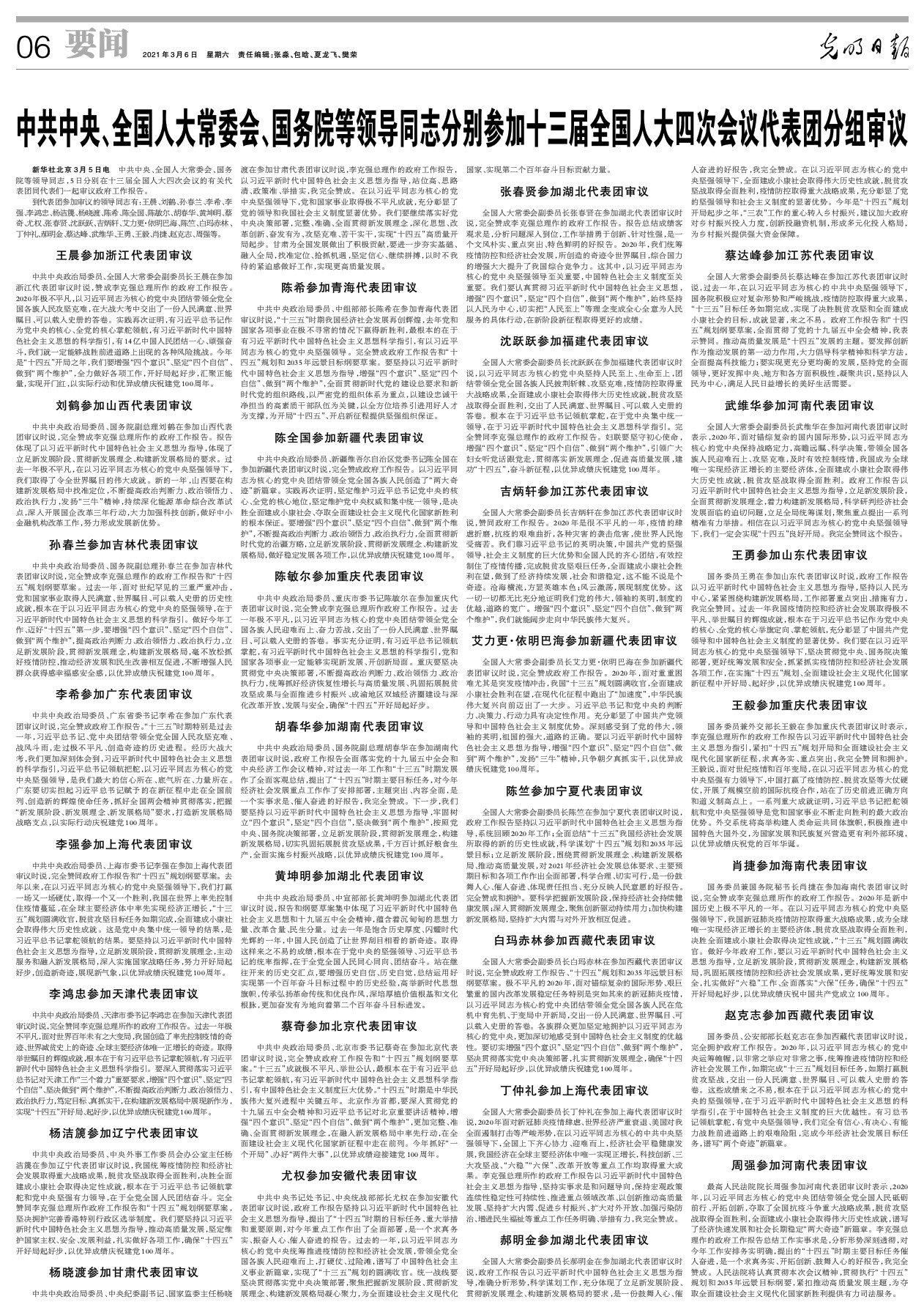 中共中央、全国人大常委会、国务院等领导同志分别参加十三届全国人大四次会议代表团分组审议