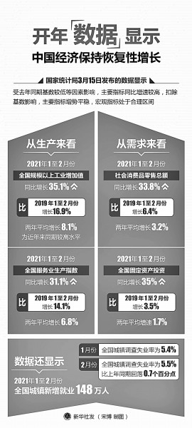 “从1至2月份经济运行的主要数据情况来看,可以说2021年中国经济继续保持稳定恢复的态势是有基础、有条件的。”刘爱华在回答记者提问时说。