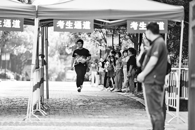6月8日,在安徽省合肥市第八中学考点,一名考生在考试结束后跑出考场。